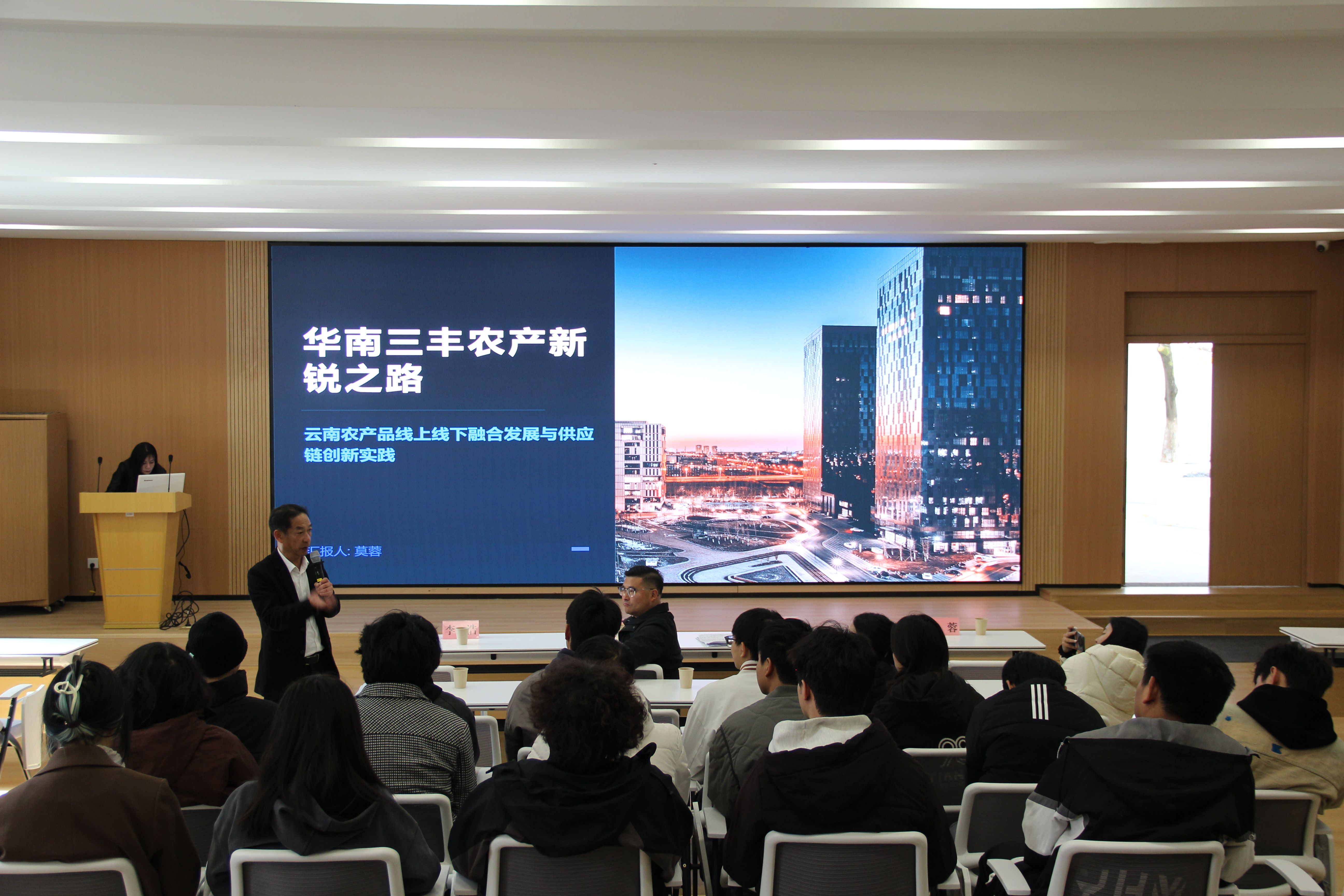 宣讲会上,陈远峰以“电商+冷链”融合趋势为主线,剖析农产品流通领域的品牌化、跨境化、绿色化升级路径,分享商业零售、高端采购、跨境出口典型案例,勉励学生夯实专业、拓展视野,实现个人成长与产业迭代同频共振。人事经理莫蓉系统介绍岗位需求、晋升通道与薪酬福利。